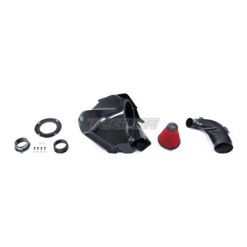Replacing the stock convoluted intake tube, our design employs a prepreg carbon tube, boasting a much larger internal volume with an internal diameter of 109mm (4.3) that seamlessly tapers down to match the turbo inlet, ensuring an uninterrupted airflow path. Complementing this design is a custom-made high-flow dry filter, rigorously tested for ISO-certified filtration performance and boasting a larger filtration area compared to the stock filter.