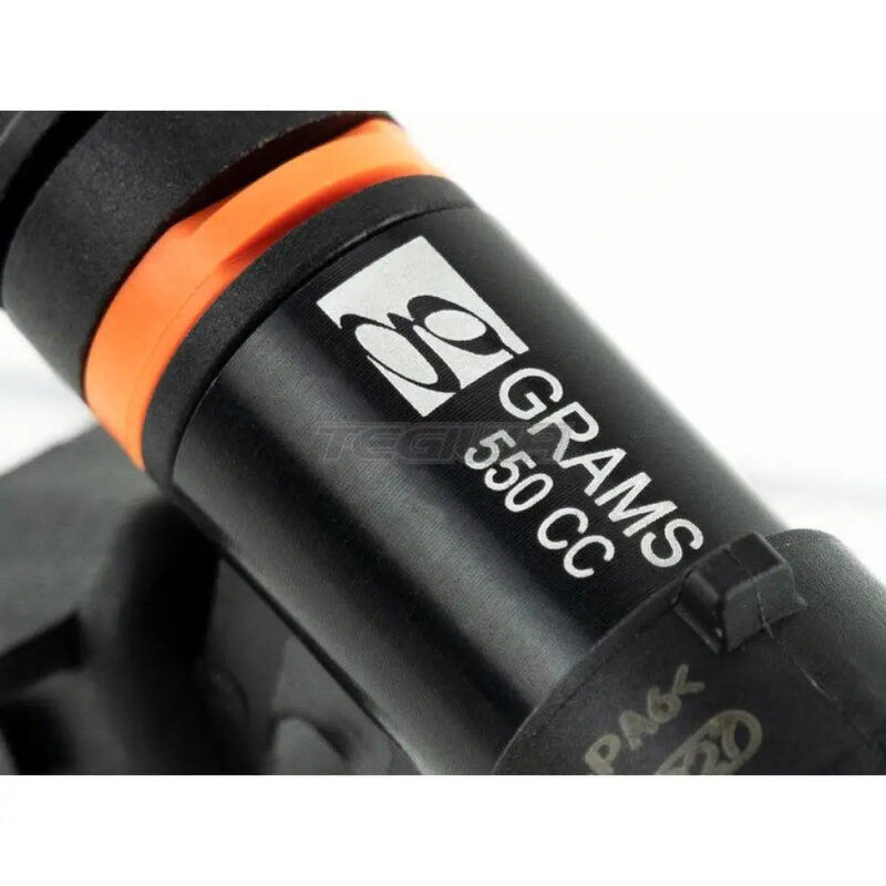 Grams Performance is the most innovative high-performance fuel injectors for todays performance vehicles. Premium materials, advanced manufacturing techniques, and stringent quality control procedures make Grams Performance the leader in high-performance fuel injectors.An engines fuel injectors perform a vital role in the accurate metering and atomization of fuel. Grams Performance accomplishes this with its high-impedance Bosch EV14 fuel injectors that are modified for high-performance use. Each injector is individually balanced, flow tested, and dynamically matched for characterization within one percent of each other. The EV14 injectors superior ball/pintle valves combine with Grams Performance precision-modified nozzles allow for consistent performance up to 118 psi, making them suitable for a wide range of applications, yet without exhibiting any of the high-pressure problems often associated with other injectors. The optimized spray pattern also helps improve mixture preparation as well as atomization. Grams Performance injectors are cold cut with diamond grinders in less than three seconds for high performance with pre-seating. Abrasive cutting creates heat, which leads to poor spray patterns and the need for competitors to pre-seat their injectors to reduce distortion. Each injector is also fitted with high-quality Viton O-rings that are resistant to extreme temperatures and harmful oils found in some fuels. Each injector set includes dead time compensation values to help ensure consistent air/fuel ratios and optimal performance when tuning. Grams Performance Fuel Injectors are carefully tested and matched in controlled laboratory environments using state-of-the-art equipment and are subjected to rigorous dyno, street, and racetrack testing to ensure proper performance in the most extreme conditions.