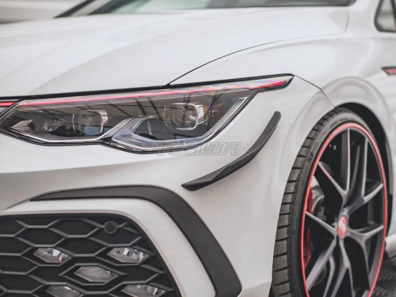 FRONT BUMPER WINGS (CANARDS) VW GOLF 8 GTI / R-LINE (2020-)Fits only:VW GOLF 8 GTI (2020-)VW GOLF 8 R-LINE (2020-)The product is made in a 3d printer.This product requires preparation before installation (primer, varnish).COMPLETE SET CONTAINS: CANARDSProduct is made from ABS plastic.Please note, the majority of our products are made from ABS plastic, the flexibility of these products provides them the ability to withstand some pressure.We highly recommend installations are completed by a professional to ensure the product is fitted correctly and according to our fitting manuals.We can only accept a return within 30 days of delivery, if the product is in its original condition including protective film still on. A refund will be processed excluding shipping costs.All products arrive with a protective film, this is a very thin plastic vacuum sealed around the product to avoid the item sustaining any damage. Once removed you will notice the product does not have any scuffs or scratches.
