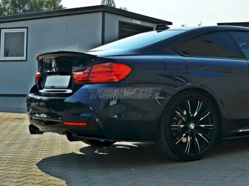 REAR SIDE SPLITTERS BMW 4 F32 M-SPORT (2013-2016)Fits Only: BMW 4 F32 M-SPORT (2013-2016)COMPLETE SET CONTAINS:-> Rear Side Splitters (Left & right)-> Fitting manual / Fitting kithttps://www.maxtondesign.co.uk/pdf/rear-side-splitters_fitting-manual-maxton.pdfPlease note, the majority of our products are made from ABS plastic, the flexibility of these products provides them the ability to withstand some pressure.We highly recommend installations are completed by a professional to ensure the product is fitted correctly and according to our fitting manuals.We can only accept a return within 30 days of delivery, if the product is in its original condition including protective film still on. A refund will be processed excluding shipping costs.All products arrive with a protective film, this is a very thin plastic vacuum sealed around the product to avoid the item sustaining any damage. Once removed you will notice the product does not have any scuffs or scratches.