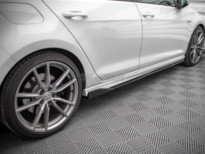 SIDE SKIRTS DIFFUSERS V.2 VW GOLF R MK7 (2013-2016) Fits Only: VW GOLF R MK7 (2013-2016)COMPLETE SET CONTAINS:-> Side Skirt Splitters-> Mounting Kit-> Mounting ManualFitting manual: https://www.maxtondesign.co.uk/pdf/side-skirts-diffusers_fitting-manual-maxton.pdfPlease note, the majority of our products are made from ABS plastic, the flexibility of these products provides them the ability to withstand some pressure.We highly recommend installations are completed by a professional to ensure the product is fitted correctly and according to our fitting manuals.We can only accept a return within 30 days of delivery, if the product is in its original condition including protective film still on. A refund will be processed excluding shipping costs.All products arrive with a protective film, this is a very thin plastic vacuum sealed around the product to avoid the item sustaining any damage. Once removed you will notice the product does not have any scuffs or scratches.