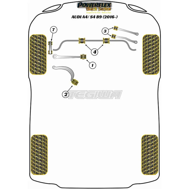 Powerflex Front Anti Roll Bar Bush 26.8mm Audi A4 S4 RS4 B9 16+Please check anti roll bar diameter before ordering. OEM Part No: Bush = 4D0411327G / 4D0 411 327 GDiagram Reference: 4Bush Size: 26.8 mmPack Size: 2