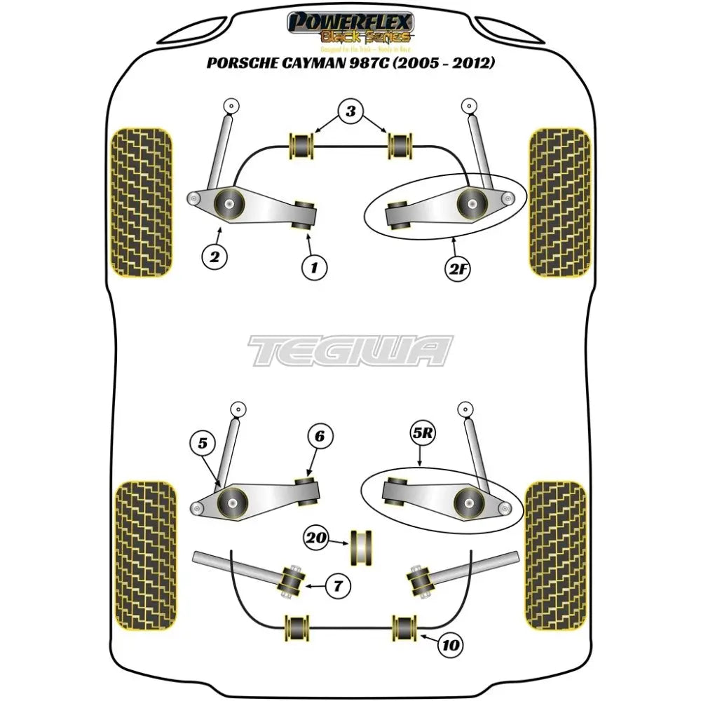 Powerflex Front Engine Mount Insert Porsche 987C Cayman 05-12PFR57-821 fits all models from 2009 onwards. For any models before this, please use PFR57-521. OEM Part No: 9A137502322 , 9A137504601Diagram Reference: 20Bush Size: N/APack Size: 1