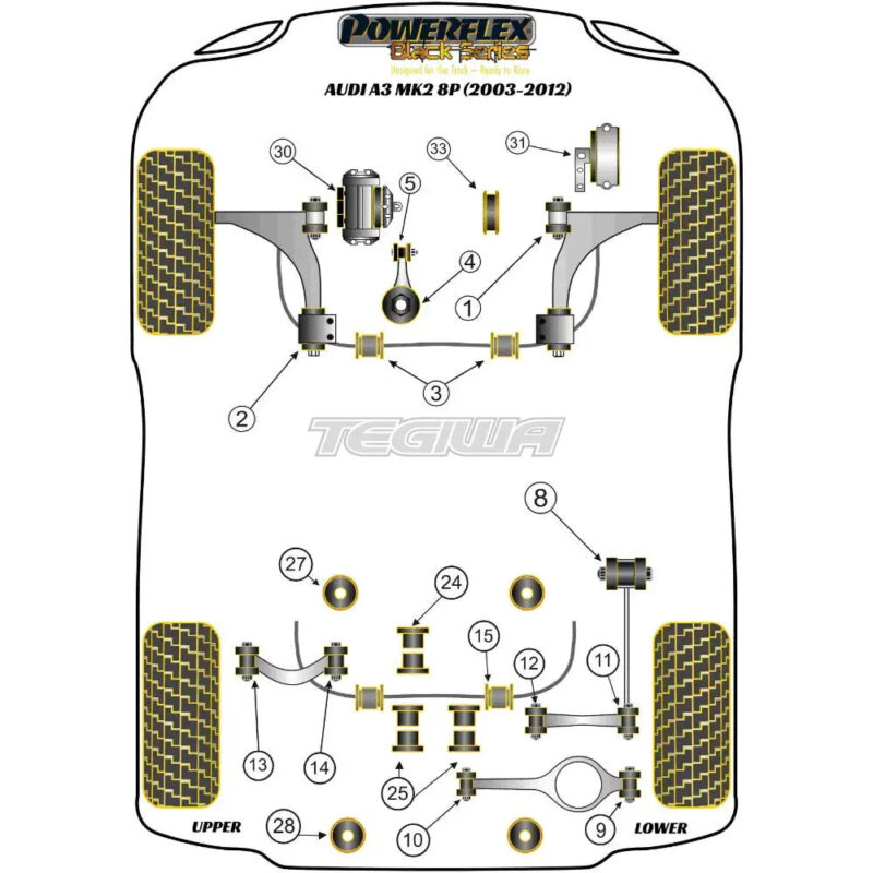 Powerflex Road Series Rear Upper Wishbone Outer Bush Audi A3 S3 RS3 8P Inc Quattro MK2 03-12