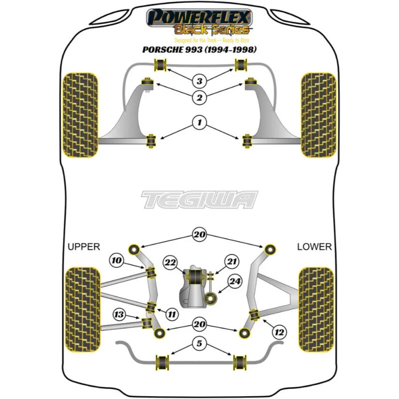 Powerflex Rear Subframe Bush Porsche 911 993 94-98Fitting InstructionsOEM Part No: 99333105100 / 99333105180, 99333105200 / 99333105280Diagram Reference: 20Bush Size: N/APack Size: 4