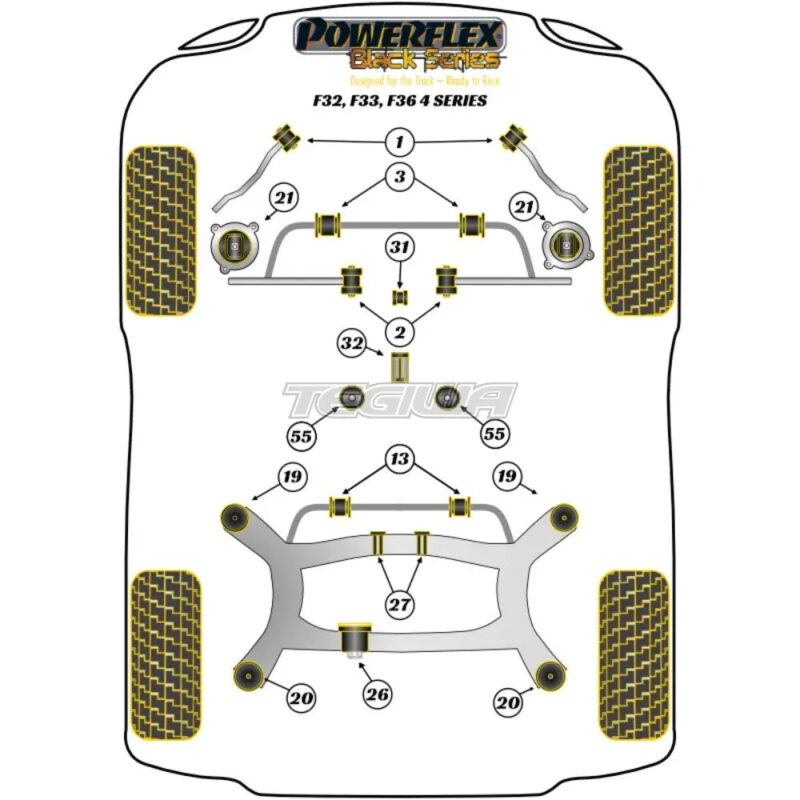 Powerflex Rear Subframe Front Bush Insert BMW 4 Series F32 F33 F36 F82 F83 13 13+This is an insert that fits into voids in the original bush to reduce subframe movement. Fitting InstructionsOEM Part No: 33316792509 Diagram Reference: 19Bush Size: N/APack Size: 2