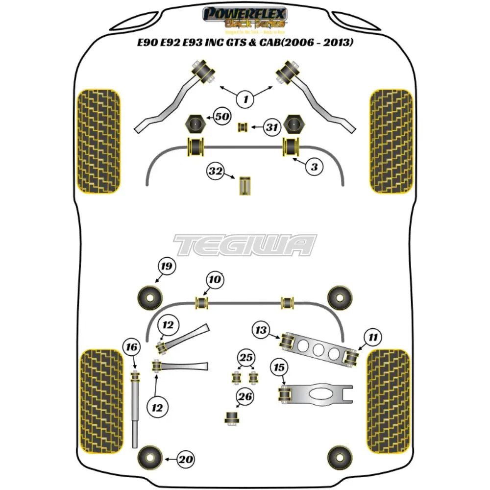 Powerflex Rear Trailing Arm Outer Bush BMW 3 Series E90 E91 E92 E93 E9X M3 Inc GTS Cab 05-13Fitting InstructionsOEM Part No: 33326763092Diagram Reference: 11Bush Size: N/APack Size: 2