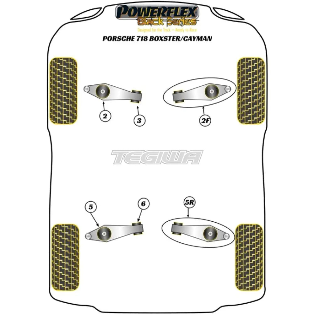 Powerflex Track Control Arm Inc Bush Kit Porsche 982 718 Boxster Cayman 16+We can now supply a high-quality cast control arm pre-assembled with our signature polyurethane bushes for a fit-and-forget product explicitly designed for high performance and convenience of use, saving both time and money with the added peace of mind of our Lifetime Warranty. Fitting InstructionsOEM Part No: 99134105302, 99734105304, 99134105321Diagram Reference: 2FBush Size: N/APack Size: 2