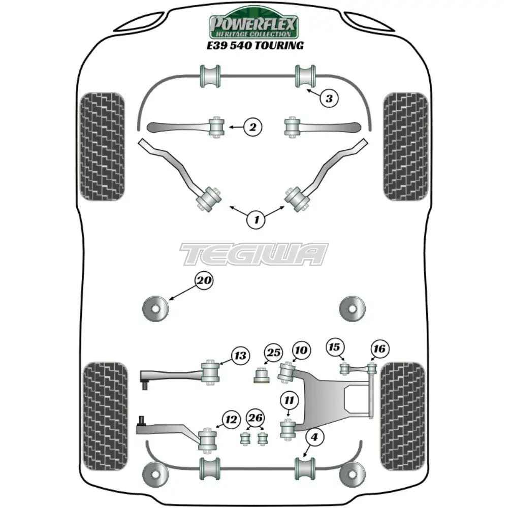 Powerflex Front Anti Roll Bar Mounting Bush 22.5mm BMW 5 Series E39 540 Touring 96-04OEM Part No: 31351096102Diagram Reference: 3Bush Size: 22.5mmPack Size: 2