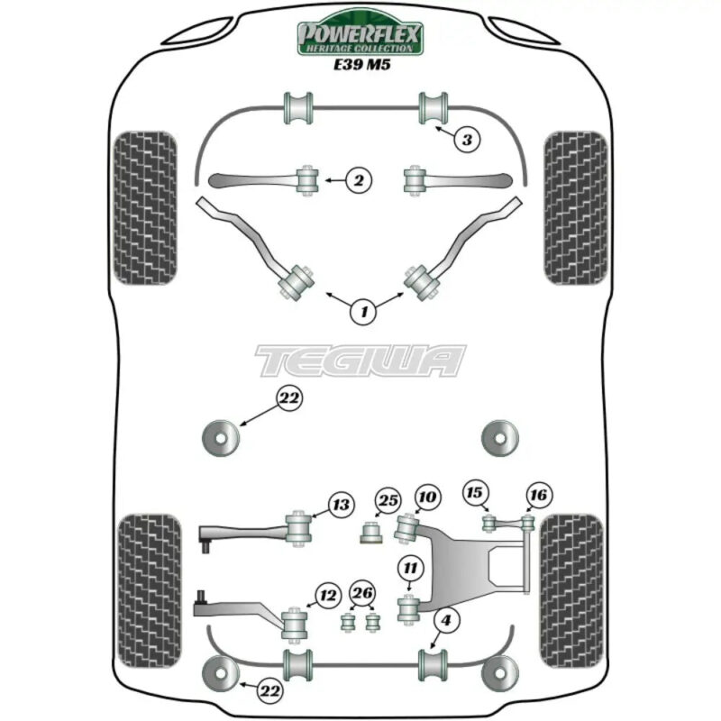 Powerflex Rear Toe Adjust Inner Bush BMW 5 Series E39 M5 96-04Fitting InstructionsOEM Part No: 33322348886Diagram Reference: 13Bush Size: N/APack Size: 2