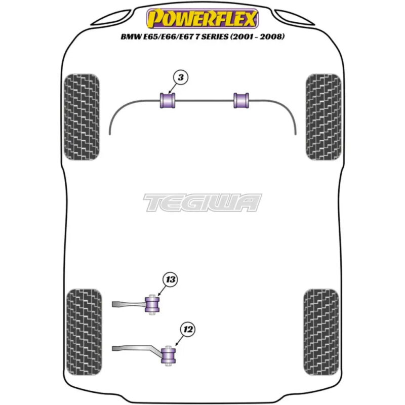 Powerflex Rear Upper Arm Inner Bush BMW 7 Series E65 E66 E67 01-08This part also replaces the bush in E60 arm OE numbers: 33322347991 and 33322347990. Fitting InstructionsOEM Part No: 33322347991, 33322347990Diagram Reference: 12Bush Size: N/APack Size: 2