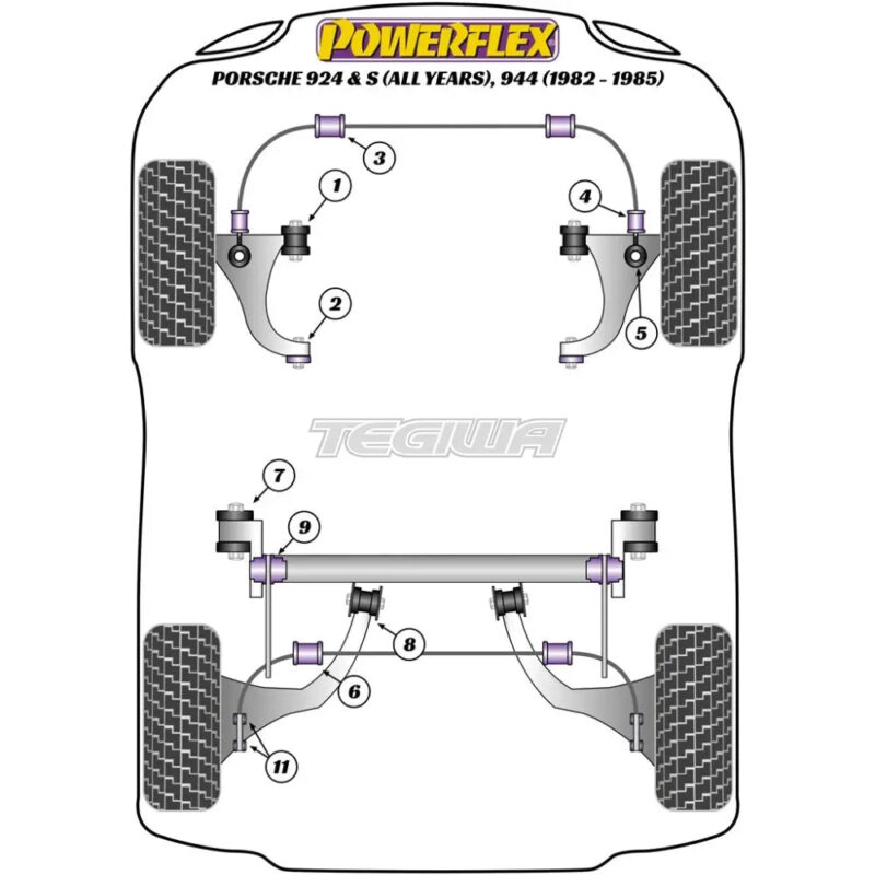 Powerflex Front Anti Roll Bar Bush 21.5mm Porsche 924 Inc S 944 82-85Fits 924 after 92CN4 02198 and Turbo after 92CN1 00306. This is a round bush, 40mm outside body diameter and 55mm overall length. Diagram Reference: 3Bush Size: 21.5mmPack Size: 2