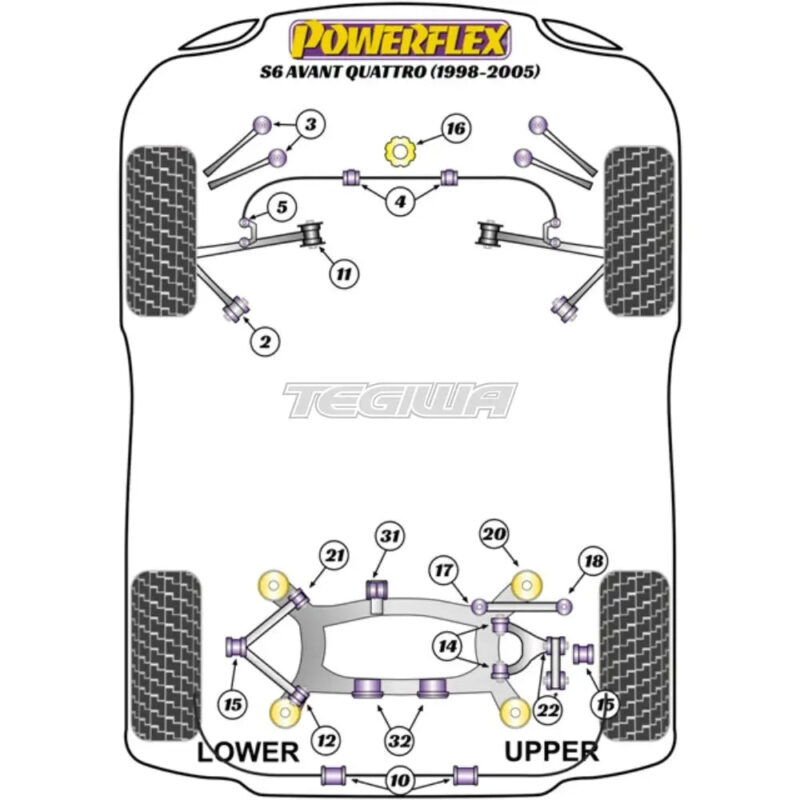 Powerflex Front Anti Roll Bar Bush 24mm Audi A6 S6 RS6 C5 Avant Quattro 97-05Please check anti roll bar diameter before ordering. OEM Part No: 8K0 411 327 ADiagram Reference: 4Bush Size: 24mmPack Size: 2