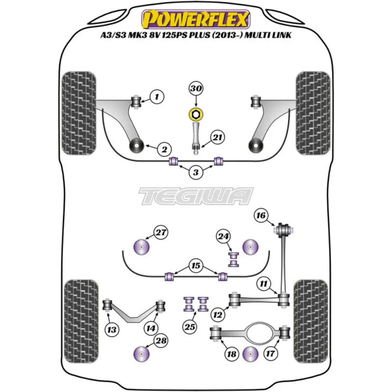 Powerflex Road Series Rear Upper Wishbone Outer Bush Audi A3 S3 RS3 8V MK3 125PS plus Multi Link 13-20