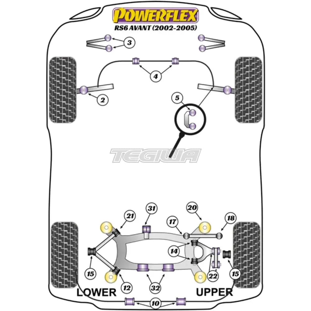 Powerflex Rear Diff Rear Mounting Bush Audi A6 S6 RS6 C5 Avant 97-05OEM Part No: 4B3 599 257 ADiagram Reference: 32Bush Size: N/APack Size: 2