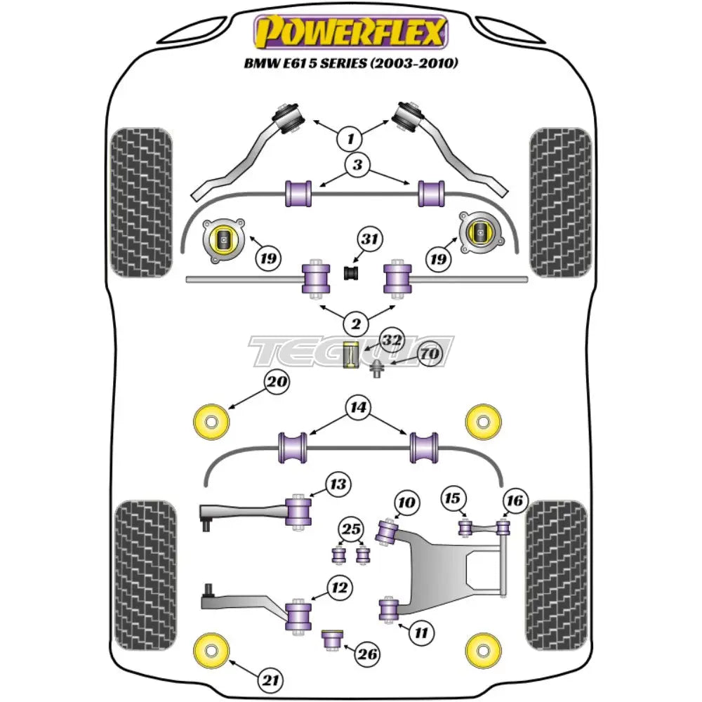 Powerflex Rear Outer Integral Link Lower Bush BMW 5 Series E60 E61 Touring 03-10Fitting InstructionsOEM Part No: 33326770749Diagram Reference: 16Bush Size: N/APack Size: 2
