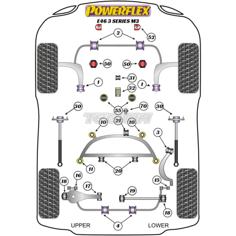 Powerflex Rear Subframe Front Bush Insert BMW 3 Series E46 M3 Inc CSL 99-06Fits E46 M3 and Z4 M vehicles only. Fits into voids in original bush. Fitting InstructionsOEM Part No: 33312283573, 33312283574Diagram Reference: 10Bush Size: N/APack Size: 2