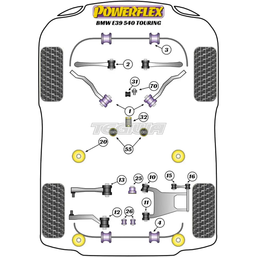 Powerflex Rear Toe Adjust Inner Bush BMW 5 Series E39 540 Touring 96-04Fitting InstructionsOEM Part No: 33322348886Diagram Reference: 13Bush Size: N/APack Size: 2
