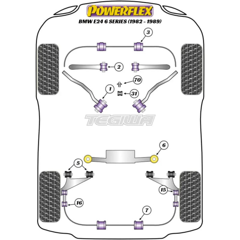 Powerflex Rear Trailing Arm Bush BMW 6 Series E24 82-89PFR5-606 is a concentric bush and not adjustable, for an on-car adjustable bush use PFR5-606G. Not suitable for E32 740 & 750 models or the E34 M5, all of which use a sliding bearing type bush. Fitting InstructionsOEM Part No: 33329058824, 33329061946Diagram Reference: 5Bush Size: N/APack Size: 4
