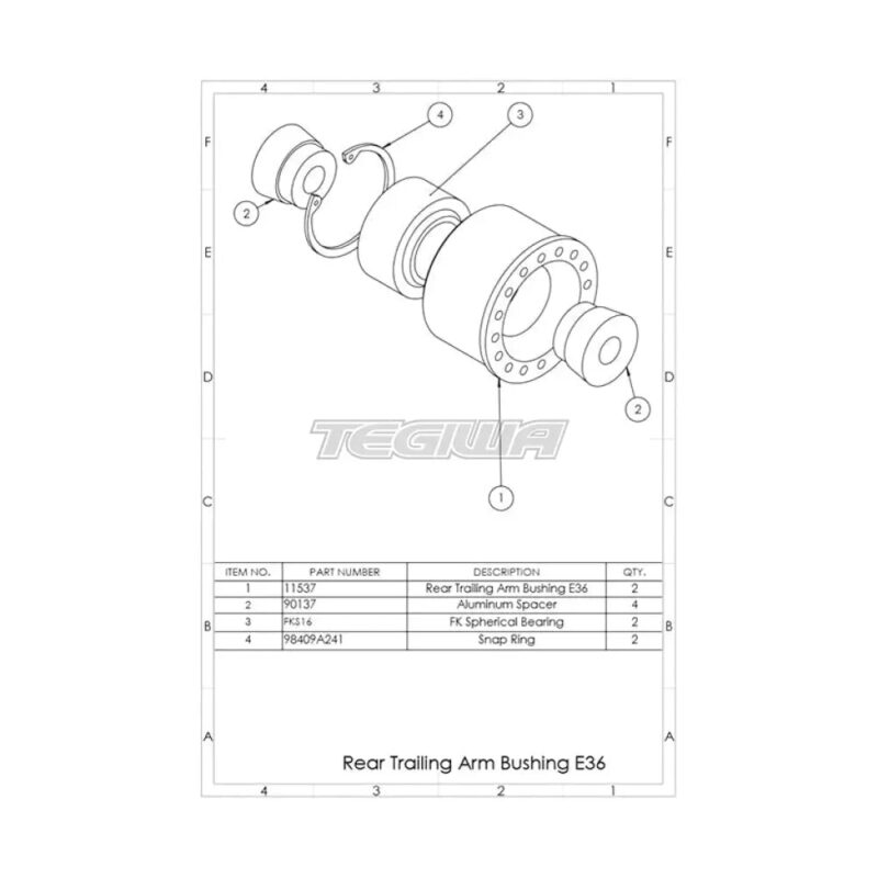 SPL Parts FKS Series BMW E36/E46 Rear Trailing Arm Bushings (RTAB) replace the stock mushy rubber bushings with low-friction articulating spherical bearings, eliminating bushing flex and reducing bind/friction. This maintains optimum suspension geometry under load to improve handling and feedback, and removes the toe change under high load that the OEM bearing would allow.Our Monoball Bushings feature FK Racing Bearings with a self lubricating Teflon liner for long life and maximum performance. Highly precise (machined to 1/1000th inch) CNC machined T6061 Aluminum bearing shells provide an accurate fit. Sold as complete kit for one car.Made in the USA. Applications: 1992-1999 BMW E36 1999-2005 BMW E46 2003-2008 BMW E85/E86/Z4 Installation Instructions: Coming Soon