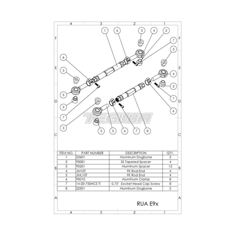 Stock non-M arms are made from sheet metal that is merely spot welded together, which tends to flex and bend under moderate loads let alone track day or racing stresses. If you use grippier tires and an engine with more torque, then the stock arms aren’t able to provide stability and consistent handling. BMW E9X/E8X Titanium Series Rear Upper Arms, which include both the guide (traction) and camber (wishbone) arms, feature gun drilled 2024 Aluminum links that are Black Anodized to prevent corrosion and provide a durable finish. Our exclusive 360 rotating 6061-T6 Aluminum Clamps allow quick, precise adjustment with Blue Anodized Titanium Socket Head Cap Screws, which shaves even more unsprung weight without compromising strength. Custom 3 piece FK Bearings Rod Ends manufactured in Connecticut feature a Teflon liner to provide quiet operation, low friction, smooth articulation, and eliminates bushing deflection under load. The PTFE linet is chemically bonded to the inner diameter of the race. The liner offers a very high load carrying capacity and has greatly increased dynamic wear characteristics. The operating temperatures of the liner ranges from -65 o to 325 oF, offering robust reliability for both street and track use. Sold as a pair. Kit contains 4 arms. Made in the USA. SPL Parts Rear Guide Links for BMW E8X/E9X Features: Black Anodized and Gun drilled 2024 Aluminum Links 6061-T6 Aluminum Clamps Blue Anodized Titanium Socket Head Cap Screws Tapered Stainless Steel Knuckle Mount Spacers Teflon lined FK Rod Ends Applications: E8X 1 Series BMW M and non M E9X 3 Series BMW M and non M Need a replacement rod end? SPL Right Hand Thread Rod Ends SPL Left Hand Thread Rod Ends Installation Instructions: SPL Rear Upper Arms E9X/E8X