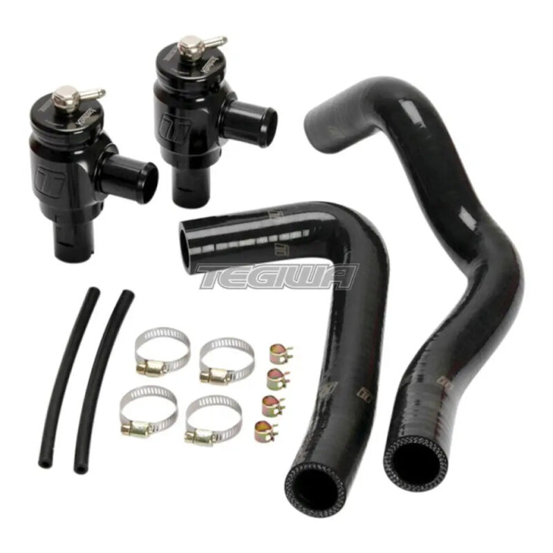 The Kompact BMW Kit is a performance bolt-on replacement for the factory plastic bypass valves offering a more incredible boost response and no leaks including 2 valves and silicon hoses for remote mounting.